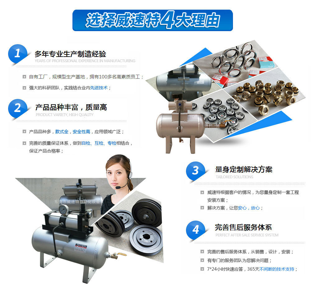公司主要業務:增壓泵,空氣增壓泵,儲氣罐,小型儲氣罐,錐套式皮帶輪,油標,歡迎撥打咨詢熱線:0769-85079262